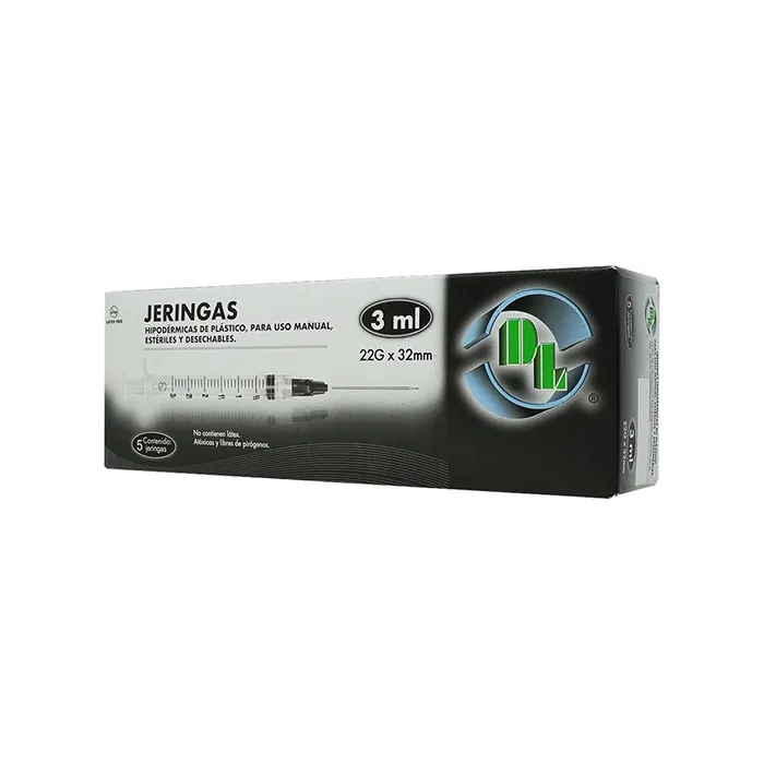 Jeringa fabricada de material no toxico, estéril, y desechable. Aguja de acero inoxidable con biselado para disminuir el dolor.